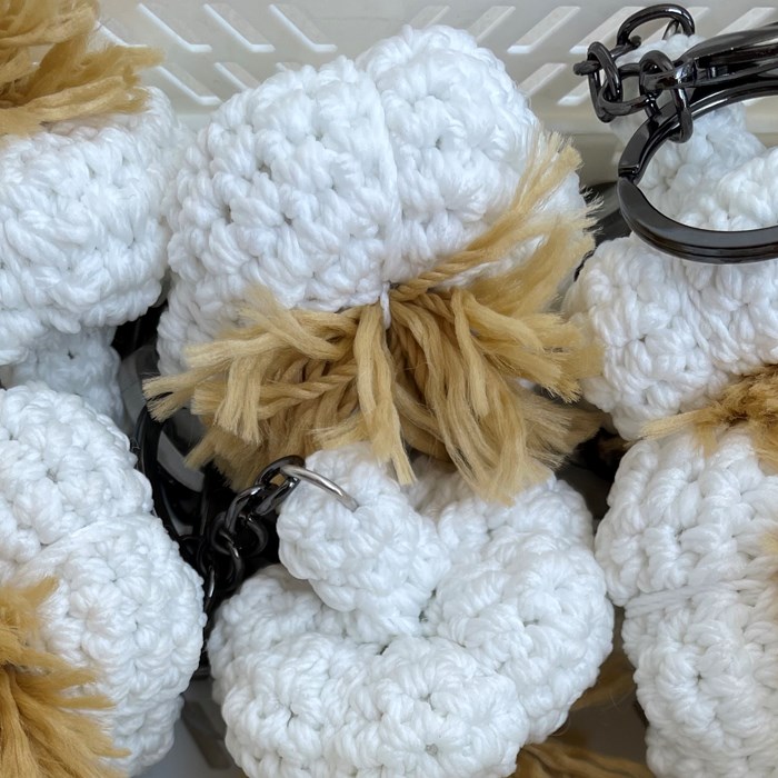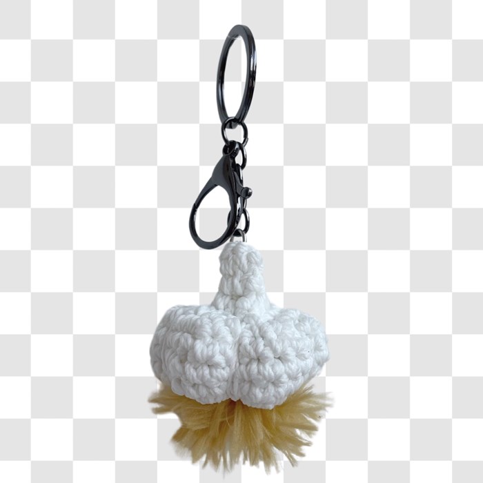 handmade crochet keychain inspired by garlic